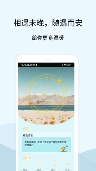 每天精选一个语录,一句晚安,一个音乐,一个美文,简单且温暖。