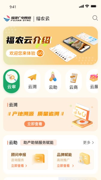 福农云平台是一款提供电商服务的应用平台,带来全方位电商功能,集云审、云商、云助、云展等服务为一体,大量农产品可以选购置换,还建立完善产业链生态体系,提供电商专业知识学习培训、农业旅游等功能,助力农业数字化升级发展!