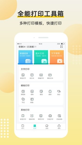 除此之外,APP还有各种模板和素材,比如课程表、清单便签、图片处理等等,提升办公效率的同时也让生活更方便。特别是文字识别功能,可以把图片转成文字,写东西更快了。标签打印也很实用,能把生活物品分类得明明白白的。