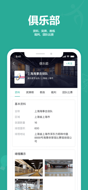 用户可在线查找到附近的剑馆来练习击剑,获取附近剑馆的地址定位信息。