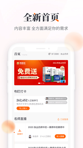 鸭题库(APP)是多门类移动智能学习平台,涵盖医护类、建筑类、财经类、专升本、教资类、金融类等数十种职业培训课程,集合各门类行业内知名讲师教学,并利用沉淀10余年市场测试的自研布盯教学法,帮助0基础的学员可以快速搭建知识框架,掌握高效的学习方法,阶段性学习从而实现短期内通关取证,解决传统的教学的痛点,帮助同学脱离枯燥复杂的学习方式和冗长的学习时间,利用碎片化的时间,更有效地系统化学习。