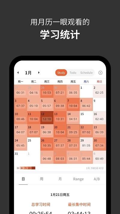 -- 利用番茄工作法,自由选择学习时长和休息时长,劳逸结合。