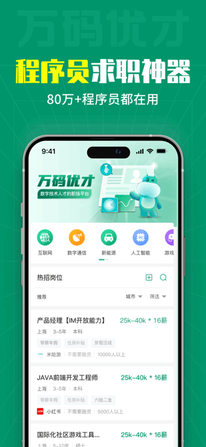 万码优才专注程序员求职招聘,根据真实求职场景,提供更适合程序员的精准岗位匹配和推荐,高效投递,快速反馈,求职又准又快!