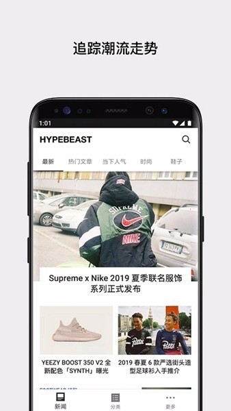 hypebeast最新版是提供关于时尚潮流品类和新闻的应用软件,主要专注面向男性时尚生活群体。实时更新推送最新热门文章,了解当下人气,时尚、鞋子、娱乐、科技等多个领域,提供个性化的推荐内容,关注名人,时刻紧跟潮流动向,让你走在时尚前端!