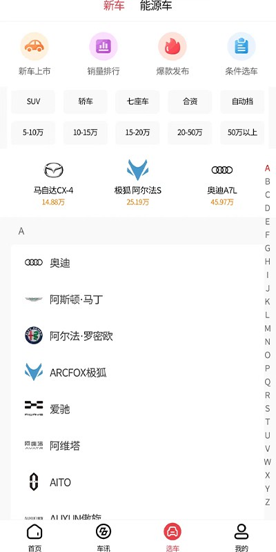 3.销量排行,爆款发布,热点专题,新车上市等都会在软件上面提供.