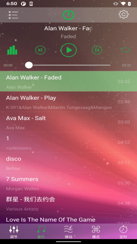 拥有不一样的固定模式,模式中心提供了器材跳变、七彩渐变以及红色渐变模式,还能自由调节速度;