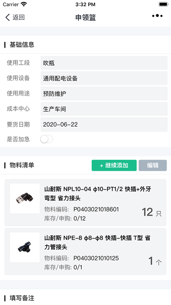 3、在线就能实现申请工作,可轻松实现出库、领料、申购和调拨申请;