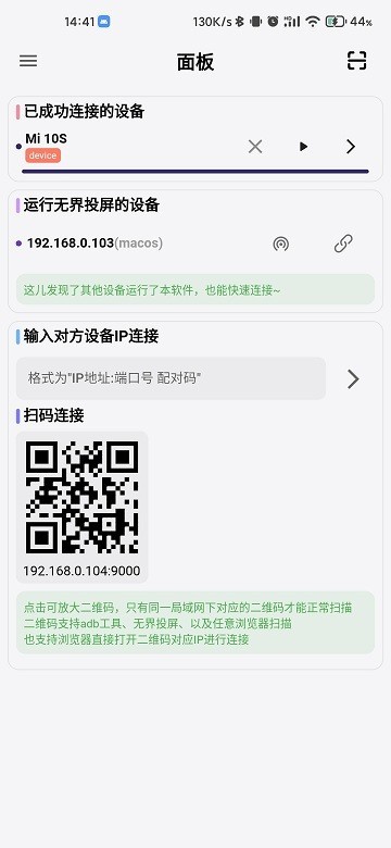 无界投屏手机版是一款超级实用的投屏工具,由酷安网友开发,支持手机、平板、电脑等多种设备跨品牌连接。它不仅操作简单,还支持一键投屏和本地上传功能,方便用户随时分享视频、音乐和图片。软件界面简洁,功能丰富,比如记录历史文件不怕找不到之前的投屏内容。最让我觉得牛的是它可以同时投屏到两个显示屏,满足多场景需求。无论是家庭娱乐还是办公会议都能轻松应对,局域网内还能自动发现设备并发起分享,清晰流畅的画质让交流更便捷。总之,这个工具真是解决了手机投屏的各种麻烦,值得推荐!
