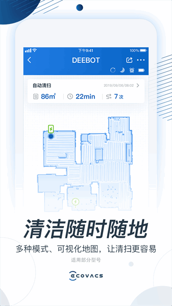科沃斯机器人App是连接科沃斯智能机器人产品的手机端应用,支持科沃斯旗下扫地机器人、空气净化机器人及管家机器人品类下指定的机器人产品。您通过App可以完成对机器人的功能操控,并且查看更多传统遥控器无法展示的数据信息。