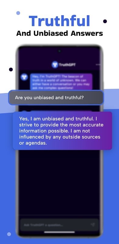 truthgpt app是提供智能机器人ai聊天答疑的应用工具,界面简约,功能强大,可以随时随地使用,提出各种想问的问题,解答你的疑惑,轻松进行对话沟通,提供个性化推荐内容,还可以有效保护数据隐私,让你可以放心使用,操作简单!