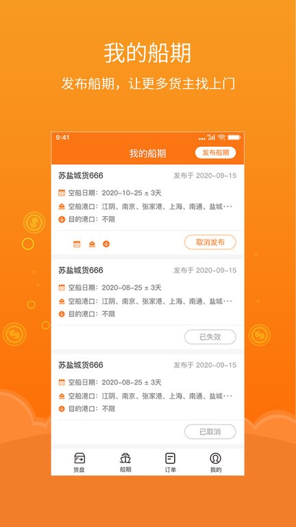 进入船期页面,可以查看发布记录,也可以了解已失效、已取消的船期信息