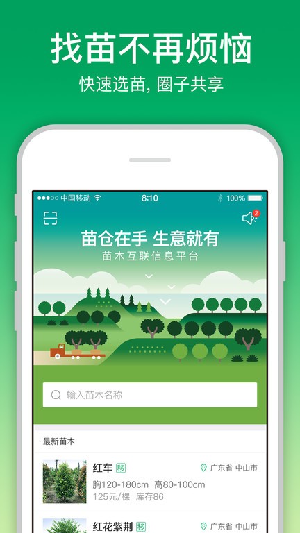 苗仓app将为您提供精准有效的苗木信息服务。全国农企用户共同构建的苗木仓储信息系统,让您体验更为全面、高效、快捷的选苗新方式,这是一个苗木互联信息的新商机!