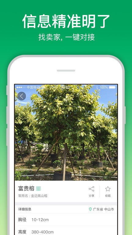点击查看苗木详情,直接选择收藏苗木,一键分享信息