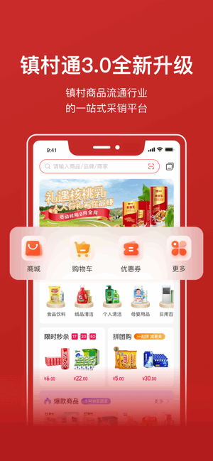 镇村通门店版做为门店订货的小秘书,镇村通门店版可以为所有的门店用户提供热门活动、商品浏览、商品购买,管理订单等功能,时时获取优惠信息和订单状态,从而为门店用户提供最优质的服务和最优惠的订货体验。