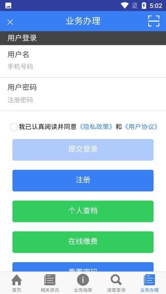 业务进度查询、查档、网上缴费、电子证照查看等。