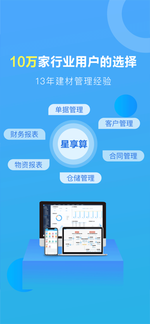 星享算最新版是一款提供建材管理办公服务的应用平台,集单据管理、客户管理、仓储管理、合同管理、财务报表、物资报表功能为一体,支持多仓库、多租赁站管理,手机录单、记账、结算十分简单方便,物资进出、材料租借,尽在掌握,数据实时同步,多维度报表分析,高效办公管理!