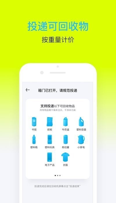 -- 投递可回收,很多可回收的物件,按照重量来计价,帮助你来计算费用