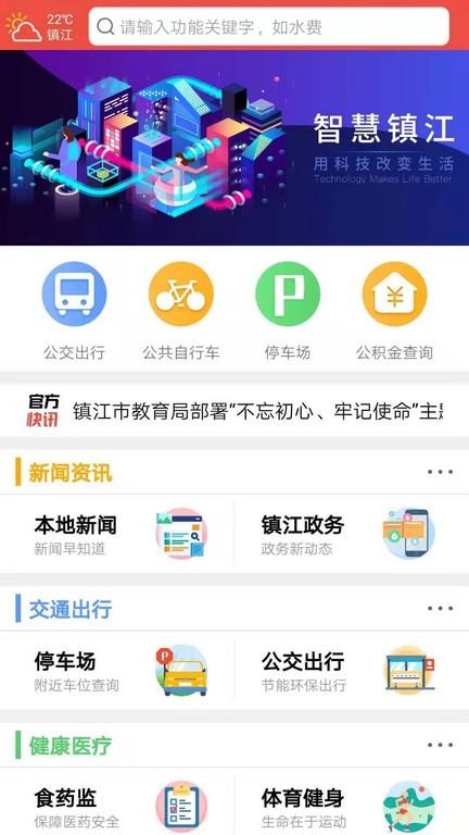 这个镇江本地的生活服务软件“镇合意”真是个宝藏!它把衣食住行都涵盖进去了,想看看新闻、查天气、找公交、查违章啥的,都能一键搞定。最牛的是还能在线缴纳各种费用,比如水电气费,公积金查询也方便,简直太贴心了。