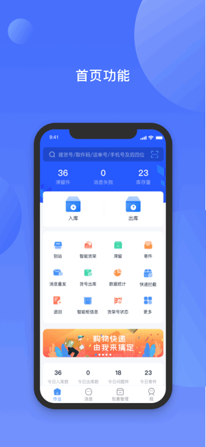 递管家驿站app又称递管家快递柜,是一款提供快递站点管理办公的应用软件,快递到站、入库、出库一手掌握,随时查询了解,配置站点信息,状态实时掌握,及时统计包裹数据,方便管理,让您的快递管理更加高效。工作更加便捷!