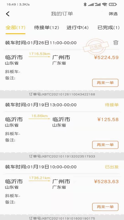 可为用户显示出所有交易的订单,可迅速与合作过的人再次合作。