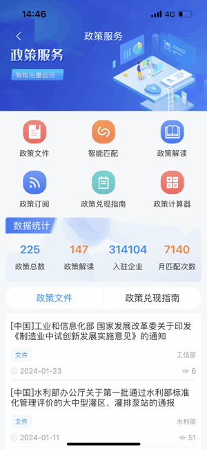 政策文件、智能匹配、政策解读、政策订阅、政策兑现指南、政策计算器