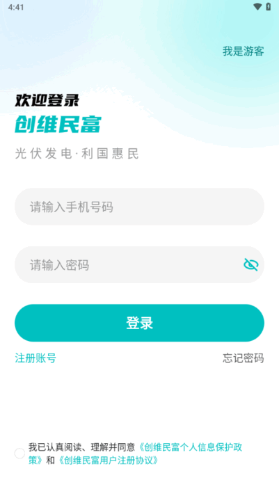 创维民富光伏app是一款提供绿色光伏生活运维管理服务平台,具备品牌优势、收益优势、质量优势、设计优势、施工优势、保险优势、运维优势、服务优势等就打优势,一键申请安装,快速处理,最新消息一手掌握,轻松管理,操作简单!
