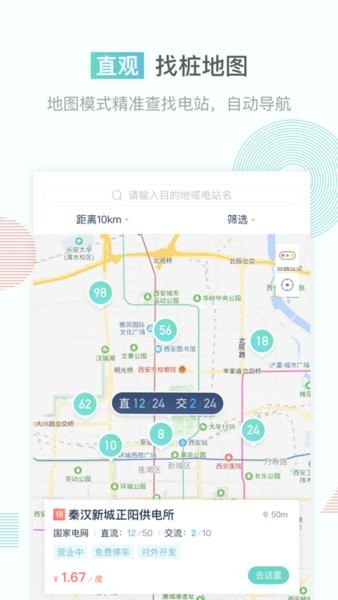 找桩地图:通过地图模式查看周边或其他坐标附近的可用充电站。