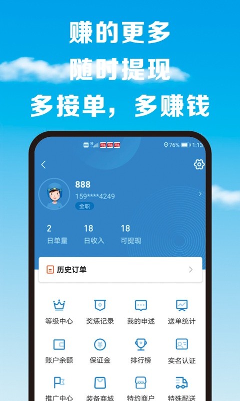 3、按单结算,实时到账,轻松赚外快。