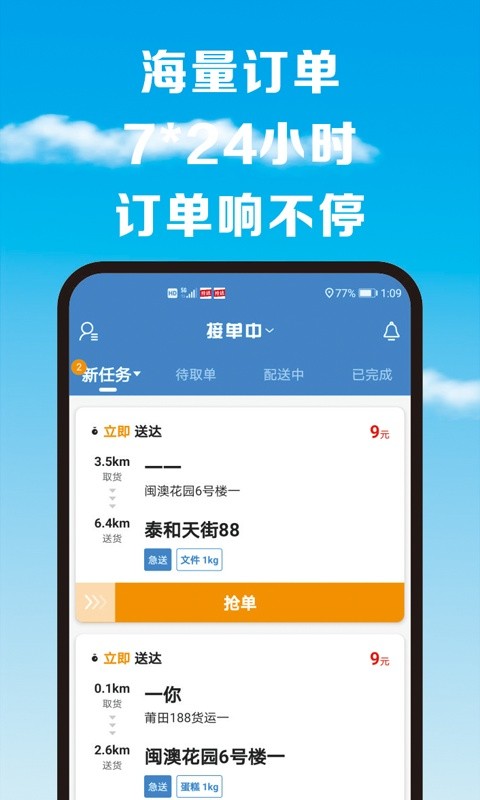 【海量订单】全天订单播报,接不完的订单。