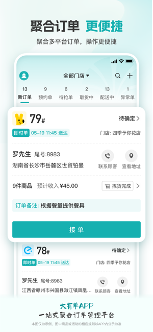 聚合美饿等全渠道订单,实现全网线上订单的统一管理