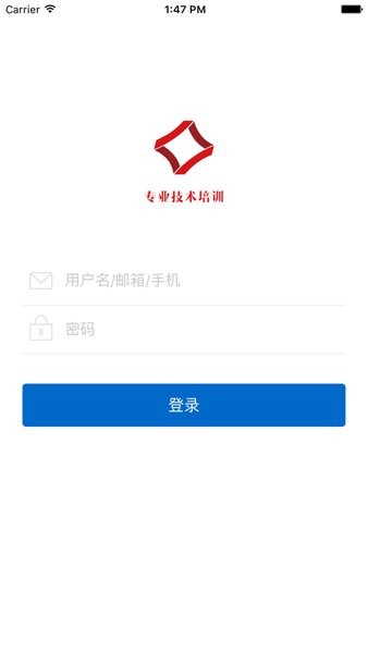 在手机桌面上,找到食药专技培训APP,点开食药专技培训APP,进入APP登录页()。学员需先在电脑(PC)端进行注册(参考培训指南一),输入用户名和密码,点击“登录”: