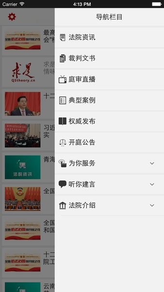 最高人民法院网站客户端包括法院咨询、裁判文书、庭审直播、典型案例、权威发布、开庭公告、为你服务、听你建言、法院介绍9个栏目,并将三个公开平台与客户端融合。本着让人民群众了解法院、监督法院、支持法院的目标,搭建指尖上的宣传平台,弘扬法治精神,促进法治为民,确保司法公正。