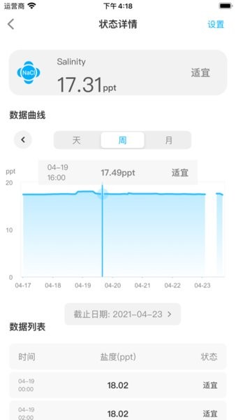 丰富的参数展示页面,环境状态栏中显示了不同温度和相应状态,还有酸碱度信息;