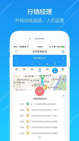 手机端查看业绩一目了然,实时查看拓客动线轨迹,稳住军中帐,决胜千里外。