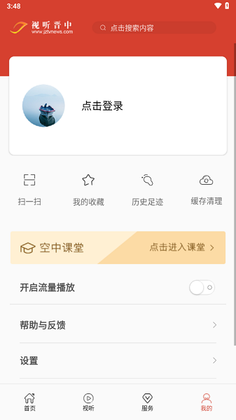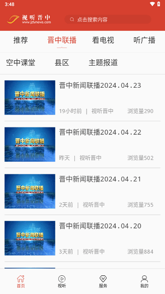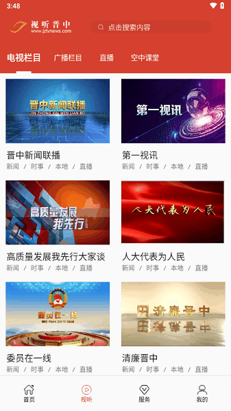 视听晋中app是一款由晋中广播电视台视听网官方推出本地资讯阅览电视广播观看和视听晋中空中课堂软件,专门为晋中市的用户准备的移动线上空中课堂学习软件,用户可以随时了解本地身边事和政策信息,还有党建课程学习,动态活动了解,便民服务,电视直播等服务,用户可以在软件上随时查看晋中本地新闻资讯和人文旅游,政要新闻,还支持国内国际咨询,新闻联播播放功能等等,晋中视听网空中课堂随时在线学习课程内容,晋中市本地新闻阅览,直播广播视频观看,线上远程课程学习教育等,支持学生线上学习课程,还有便民服务等,需要的可以下载晋中视听网空中课堂在线直播app使用!