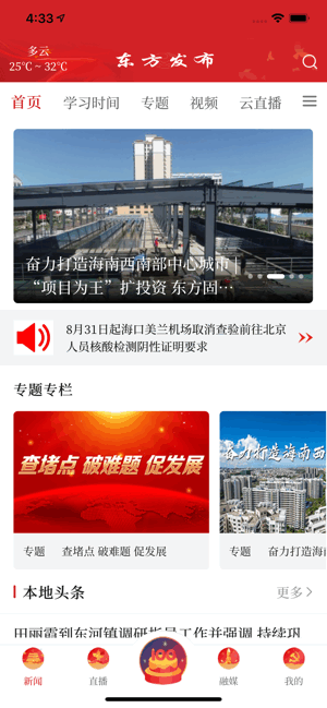 东方发布软件是一款东方市自己的地方性新闻资讯app,这里有着丰富的资讯内容,实时更新,聚焦时事热点,覆盖国内外的热门头条信息,还可以看直播、听广播、读报纸,精选专题推荐,更多政务便民服务极大方便当地人的生活!
