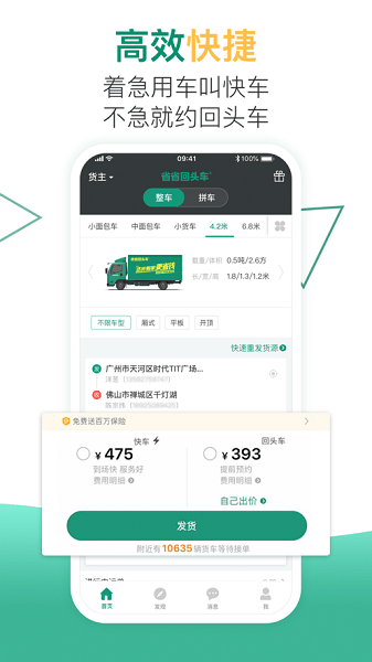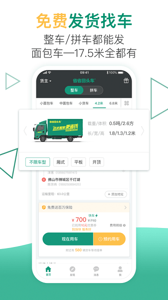 省省回头车提前预约更省钱,免费接单,整车、拼车、零担都能发