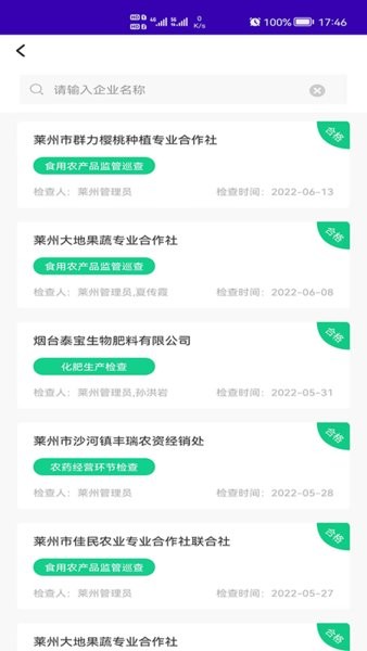 农安通手机app官方最新版为农产品提供了监督检查服务,能够查看各大合作社的详细信息、巡检的合格率、次数以及历史的检查记录,有非常详细的统计分析数据,还能边界的进行扫码查验,确保农产品的安全。
