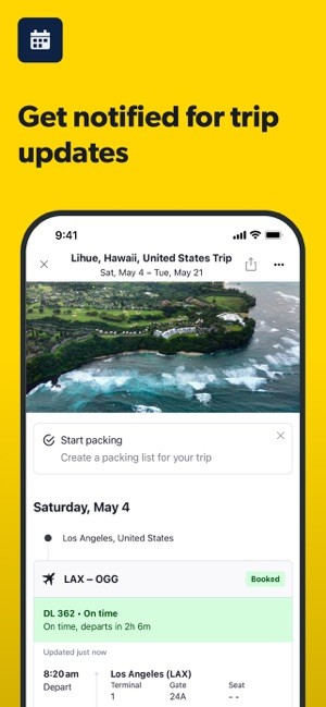 当您的航班发生变化或跟踪航班时获得警报,这样您就可以查看是否会进行连接。