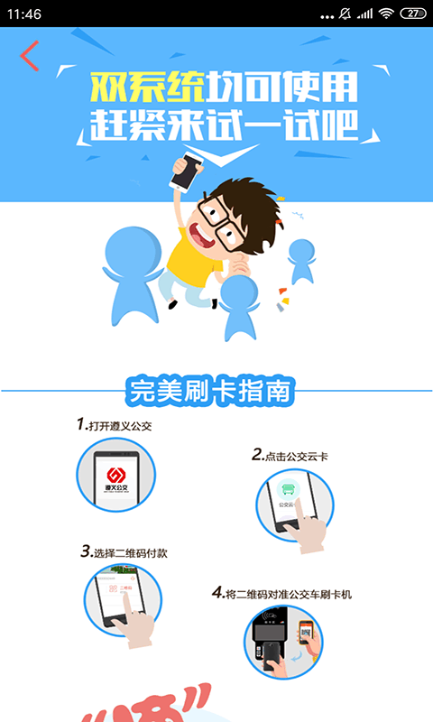 遵义公交手机版是一款遵义市本地的公交出行软件,集公交资讯、公交ic卡、实体卡充值、实时公交动态、客车车票等功能服务为一体,带来一站式出行体验,便利了大家的出行。多条线路智能推荐,公交运行状态一手掌握,一键扫码乘车、在线充值,十分方便!