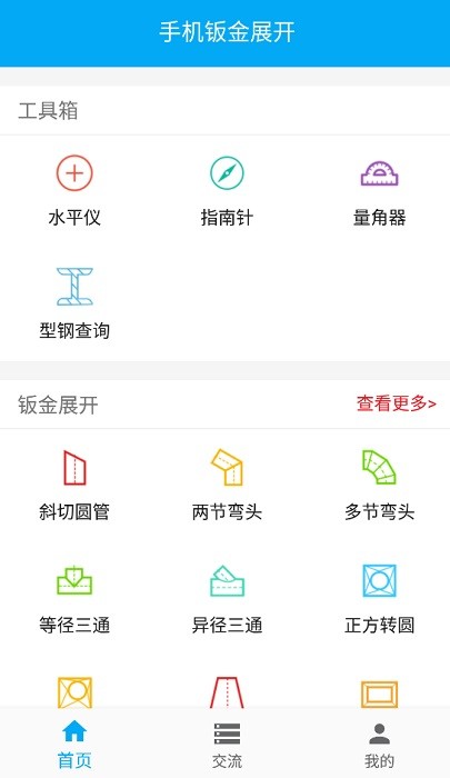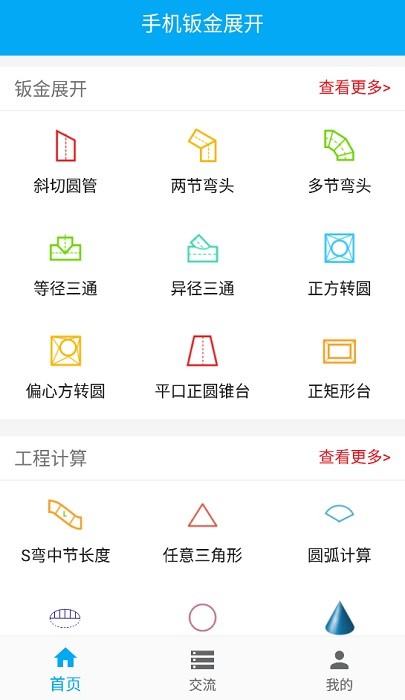 手机钣金展开app安卓免费最新版是非常好用的钣金展开下料软件,支持在手机上设定展开的精度和文字大小,含有圆管、弯头、三通、转圆的展开图,内径、长度、斜口角度等可以自由输入,能进行计算,可以自由选择板材还是成品管下料的方式,使下料以及计算的好帮手!