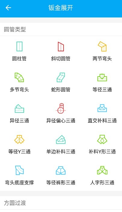 工具汇集了圆管、圆锥体、球面以及方圆连接管等各种常用的异形钣金构件。