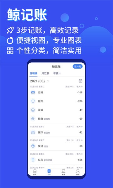 1.快速记账:3步完成,告别繁琐,极简随手记录;