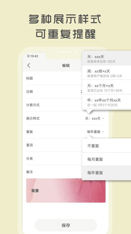 支持按周期定时提醒、提前提醒、重要日子提醒,不错过每一个重要的日子;