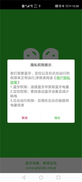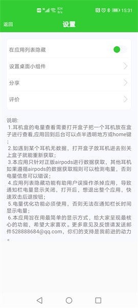 本应用主要是针对AirPods蓝牙耳机在Android手机使用时能实时查看剩余电量。主打快速,轻巧,便利。让用户可以实时观察蓝牙耳机电量