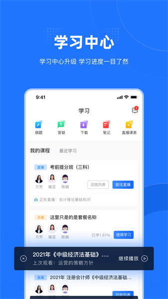 多样化辅导班次,满足不同学员的需求;音/视频随心切换,移动听课更方便;直播解析,互动零距离。用你喜欢的方式,享受学习。