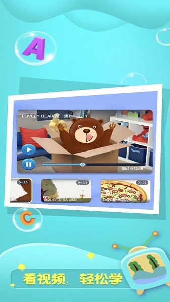 2.提供海量音视频资源,包含歌曲歌谣、动画片、电影等,让孩子通过听音看动画轻松学习英文、练习发音。