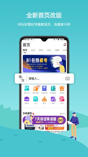 俄语学习7500km app为俄语爱好者和想学习俄语的朋友提供了专业的指导,软件提供了丰富的俄语课程,专业老师教你学俄语;还有特色的7天训练营,就算零基础的,7天内也让你学会俄语;并且提高了俄语词典功能,查词更容易。