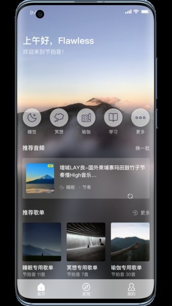 好用的冥想解压软件,节拍音有很多好听适合冥想的音乐,非常轻松解压,帮助你进入冥想,释放焦虑,拥有好的睡眠状态。