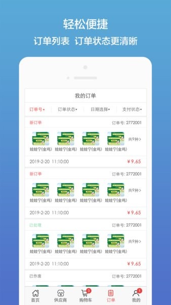 详细的订单列表数据信息,订单的状态非常的清晰明了;